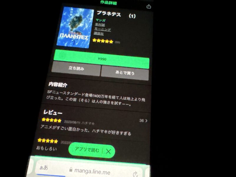 LINEが運営する「LINEマンガ」では、プラネテスを全4巻までを有料配信しています。