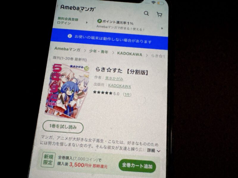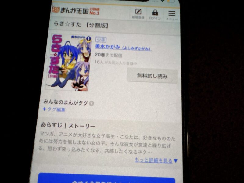 現在、「らき☆すた」を無料で読める公式漫画アプリはありませんでした。