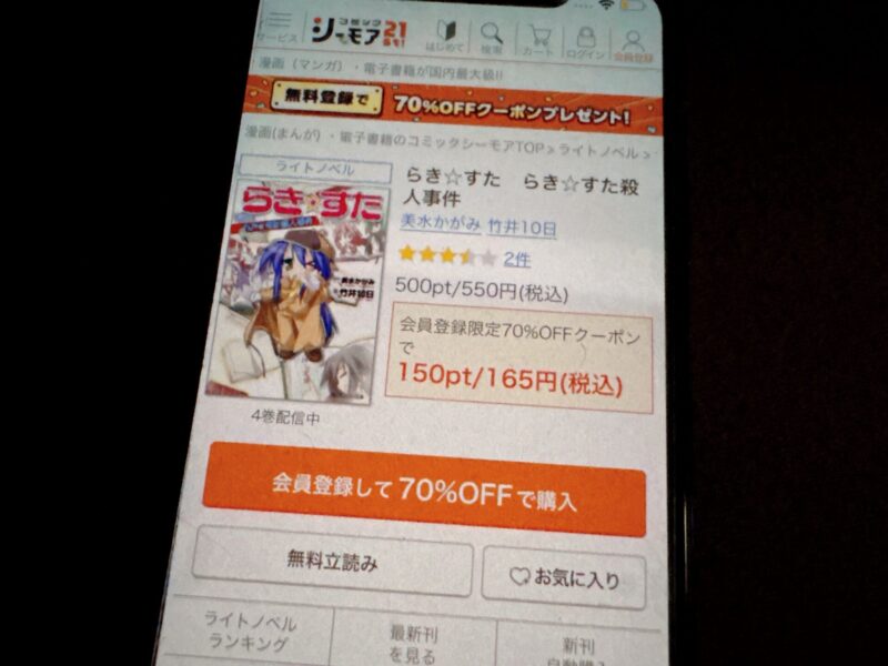 また、ブックライブは会員登録するだけで1冊限定の70%オフクーポンがもらえます