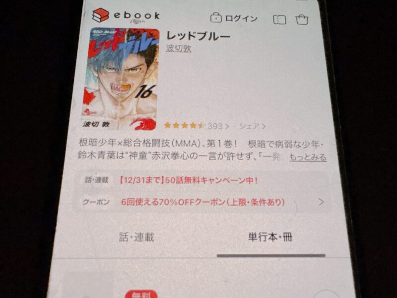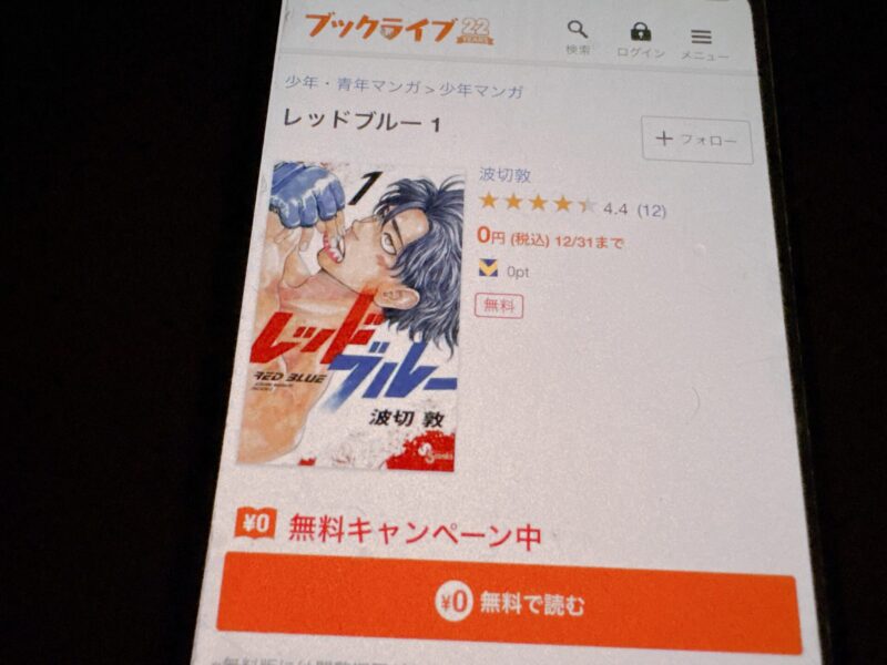 キャンペーンを利用することで一部の巻は無料で読めるため、お得にレッドブルー漫画を全巻読むためには利用しましょう。
