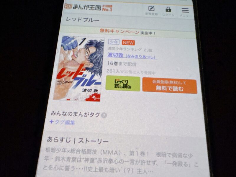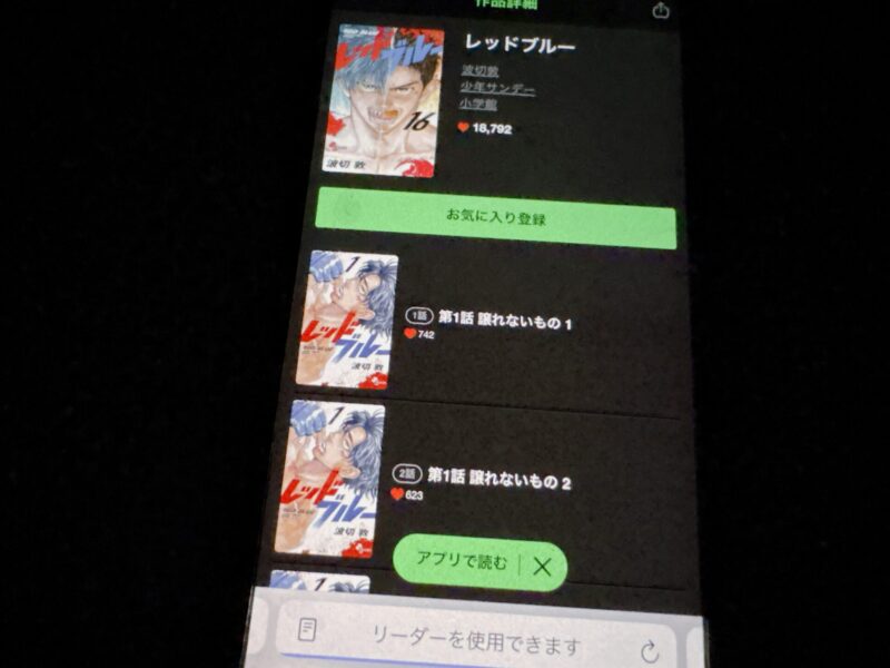 ここからは、レッドブルーの漫画が無料で読めるアプリを紹介します。