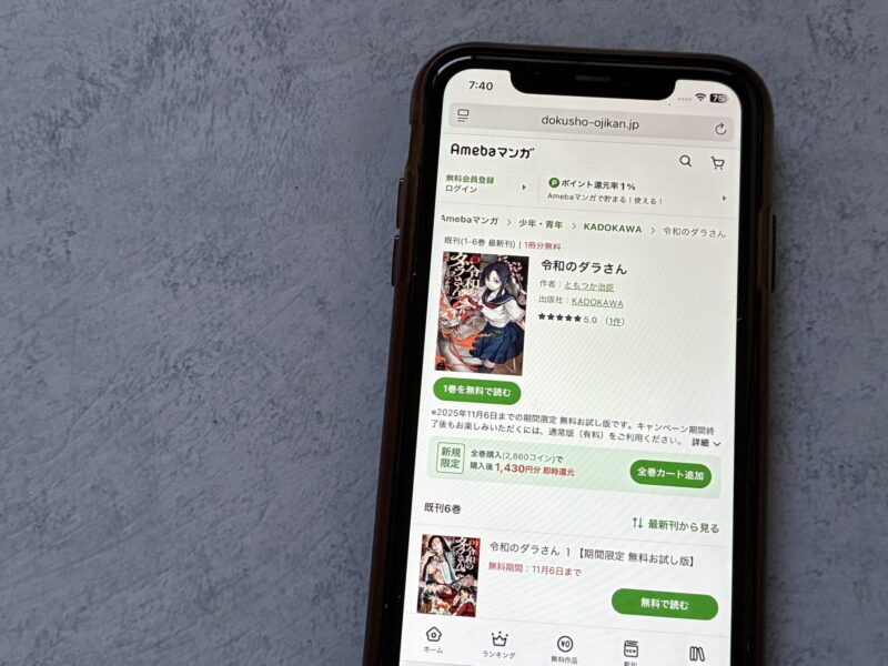 キャンペーンを利用すると、令和のダラさんを割安にまとめて購入したり、1巻だけ無料で購入することが可能です。