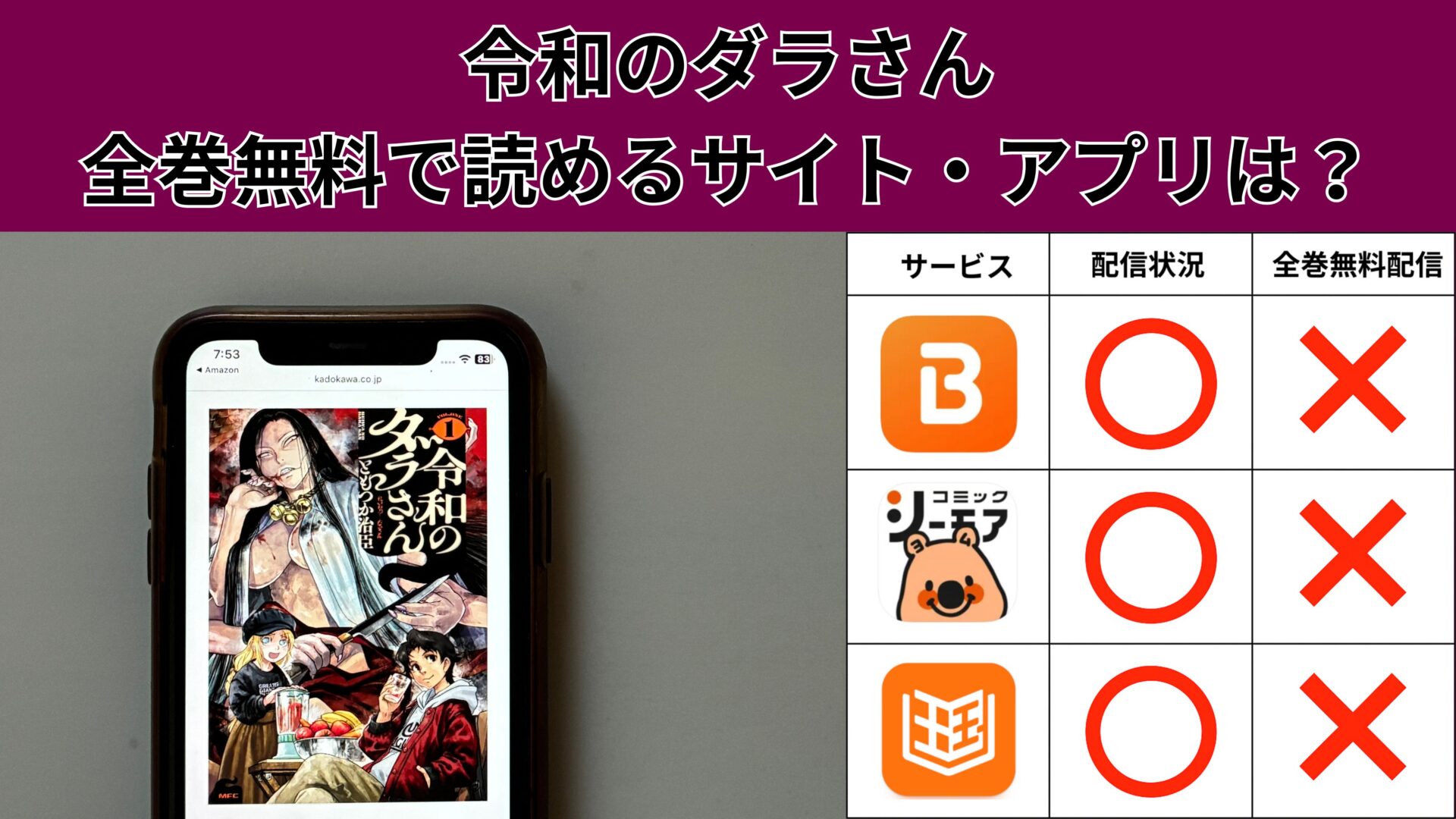 令和のダラさんが、無料で読める漫画アプリを紹介します。
