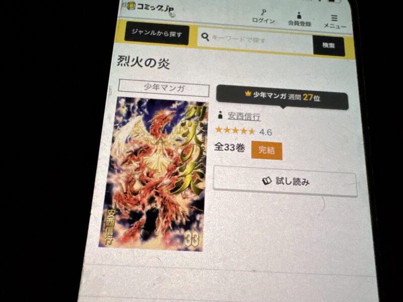 烈火の炎はまるごと無料では読めませんが、試し読みはできます。
