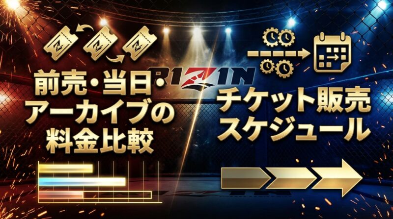 | RIZIN LIVE | 2025/12/4(木) 12:00販売開始(公式告知に明記) | (当日販売の細かい区切りは“各ページ表示”依存のため、共通表現には注意) | 「販売期限 1/12(月)21:00」表記は、RIZIN LIVE単体ページ側で同形式の確認が取りにくい(※少なくとも公式告知は「アーカイブ期間」表記が中心) | アーカイブ期間:~2026/1/12(月)23:59 |