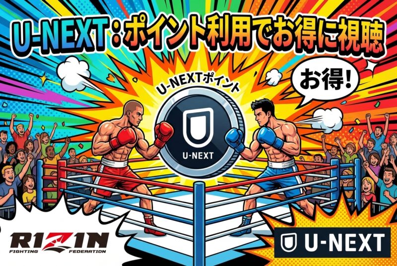 「U-NEXT」は、映画やドラマ、アニメなど豊富なコンテンツが魅力の動画配信サービスですが、RIZINの視聴にも非常におすすめです。特に、毎月もらえるポイントをPPVチケットの支払いに充当できるため、継続的に利用することでRIZINをお得に楽しめます。