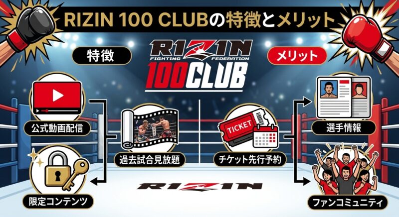 RIZINの公式ファンクラブである「RIZIN 100 CLUB」は、熱心なファンにとって見逃せないサービスです。 月額会員になることで、PPVチケットを通常価格よりもお得な会員価格で購入できるのが最大の魅力と言えるでしょう。