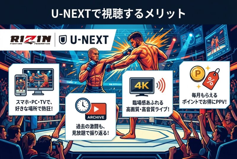 U-NEXTは31日間無料トライアル+初回600ptで、PPVの支払いにポイントを使えるのが魅力。 まずは無料で始めて、RIZINをスマートに楽しめます。