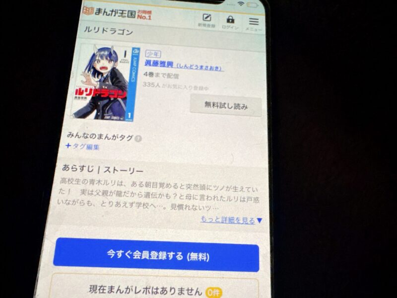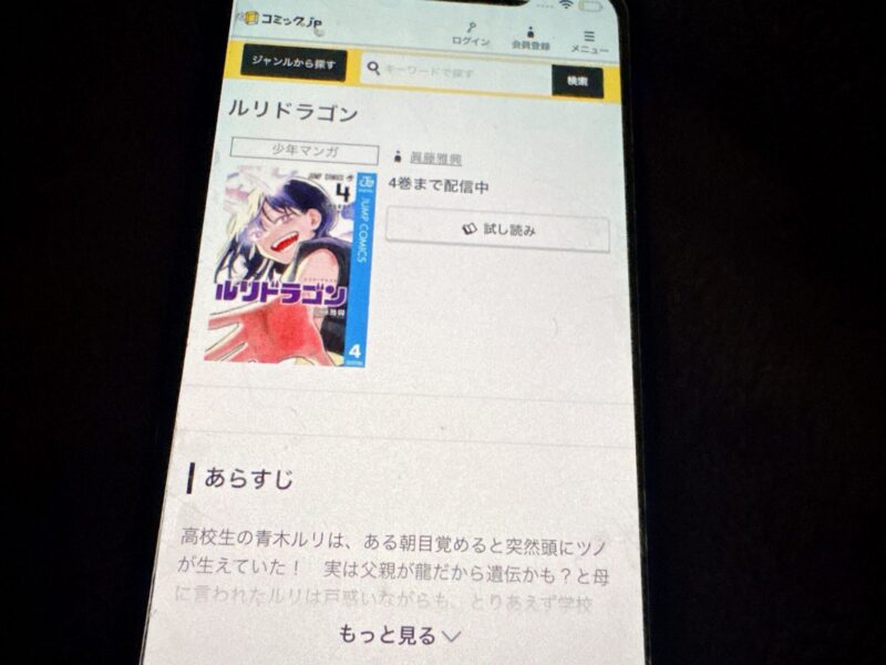 ルリドラゴンはまるごと無料では読めませんが、試し読みはできます。