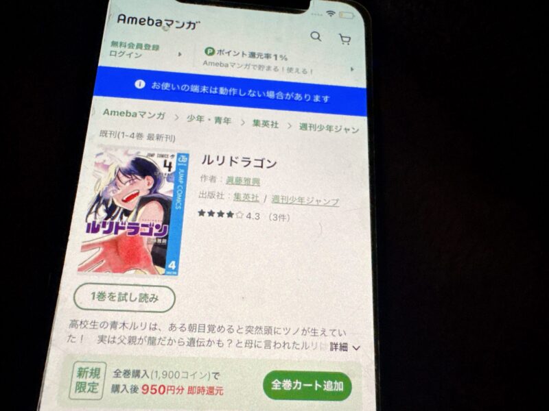 キャンペーンを利用すると、ルリドラゴンを割安にまとめて購入したり、1巻だけ無料で購入することが可能です