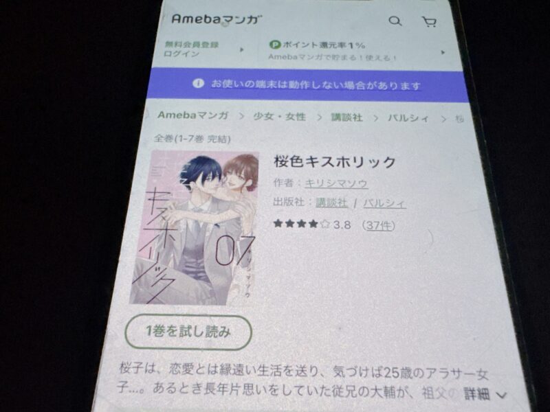 桜色キスホリックはまるごと無料では読めませんが、試し読みはできます。