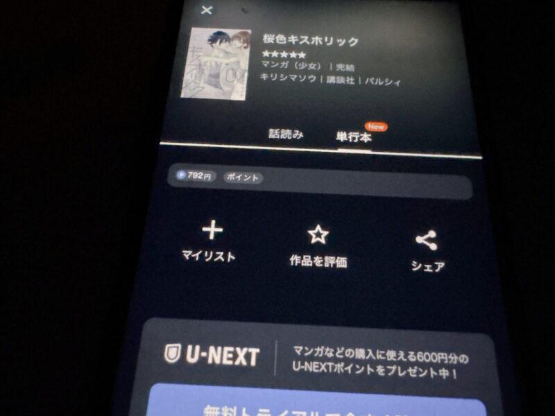 U-NEXTの31日間の無料トライアルを利用すれば、600円分のポイントが配布されるため、最新話の「桜色キスホリック」をお得に購入するために使用できます。