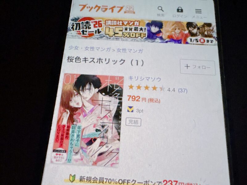 キャンペーンを利用することで一部の巻は無料で読めるため、お得に桜色キスホリック漫画を全巻読むためには利用しましょう。