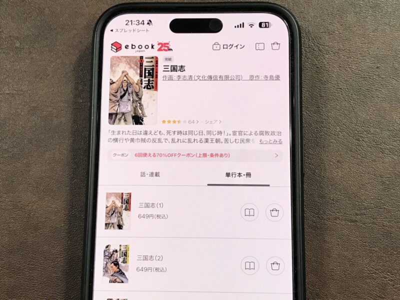 クーポンは6回まで使用できるので、三国志をまとめ買いするのに最適です。