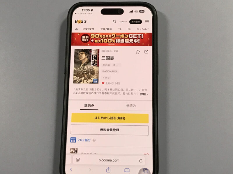 「ピッコマ」では、三国志が3話まで無料で読むことができます。