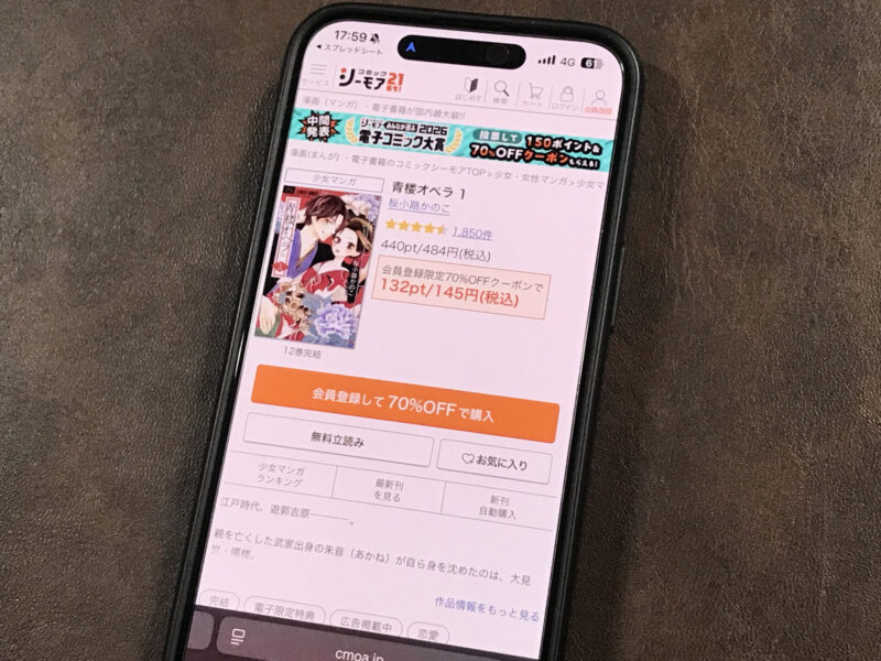 たとえば青楼オペラ1巻(税込484円)を購入する場合、クーポン利用で145円(税込)で購入できます。