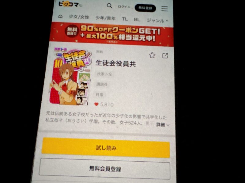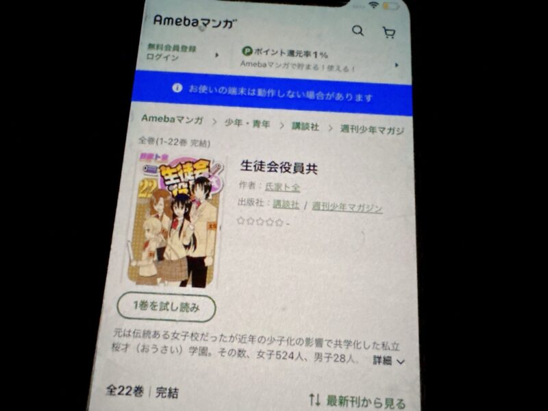ここからは、生徒会役員共の漫画が無料で読めるアプリを紹介します。