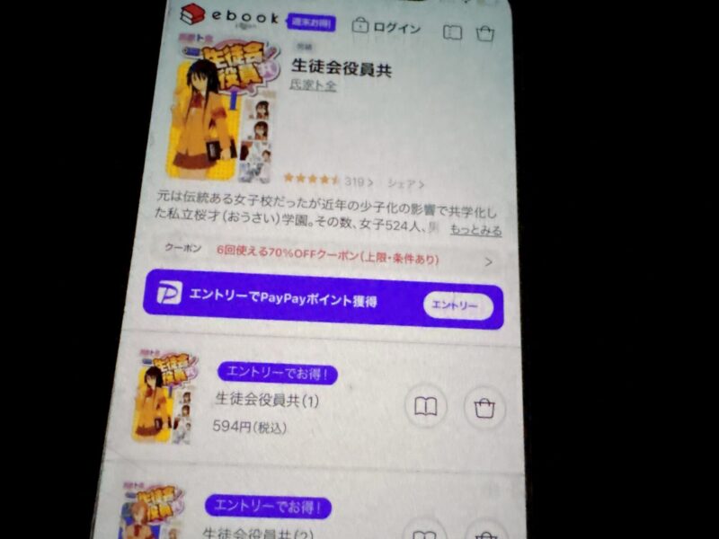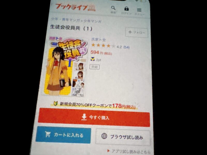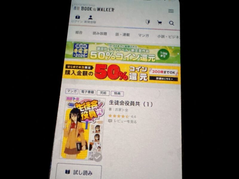 キャンペーンを利用すると、生徒会役員共を割安にまとめて購入したり、1巻だけ無料で購入することが可能です
