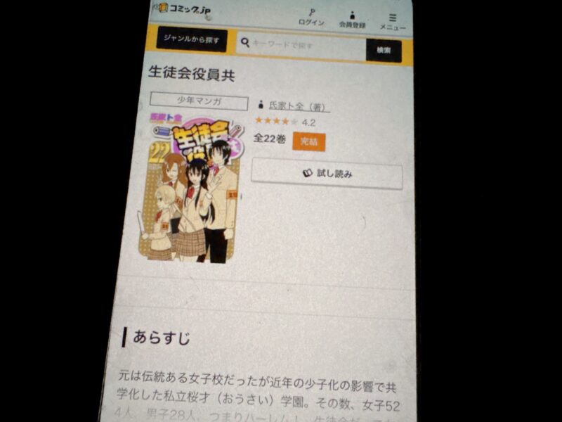 生徒会役員共はまるごと無料では読めませんが、試し読みはできます。