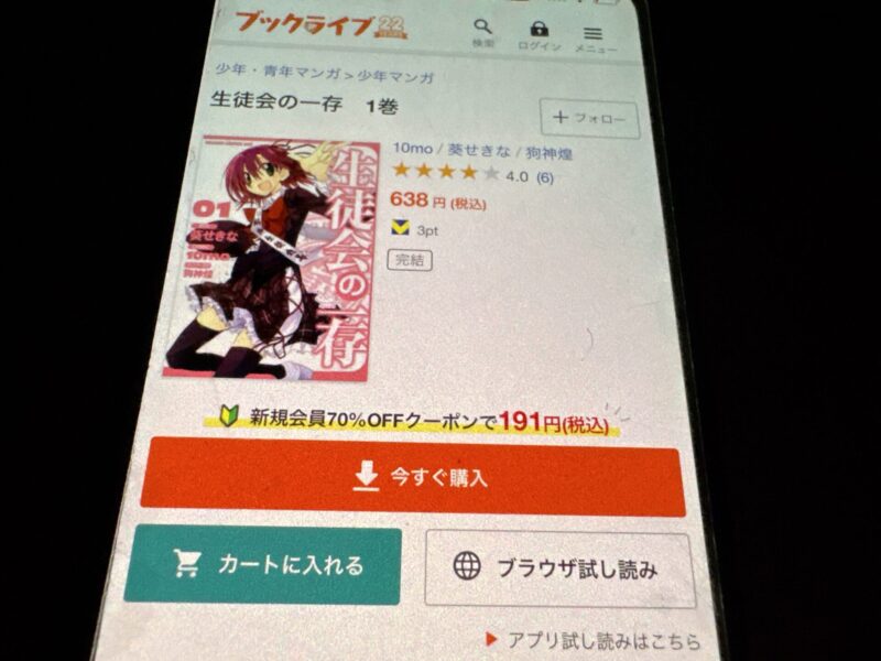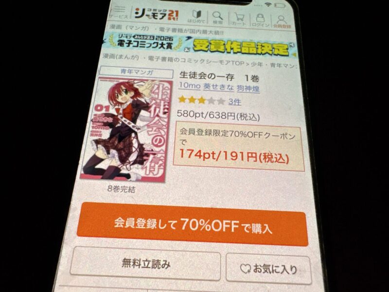 キャンペーンを利用すると、生徒会の一存を割安にまとめて購入したり、1巻だけ無料で購入することが可能です。