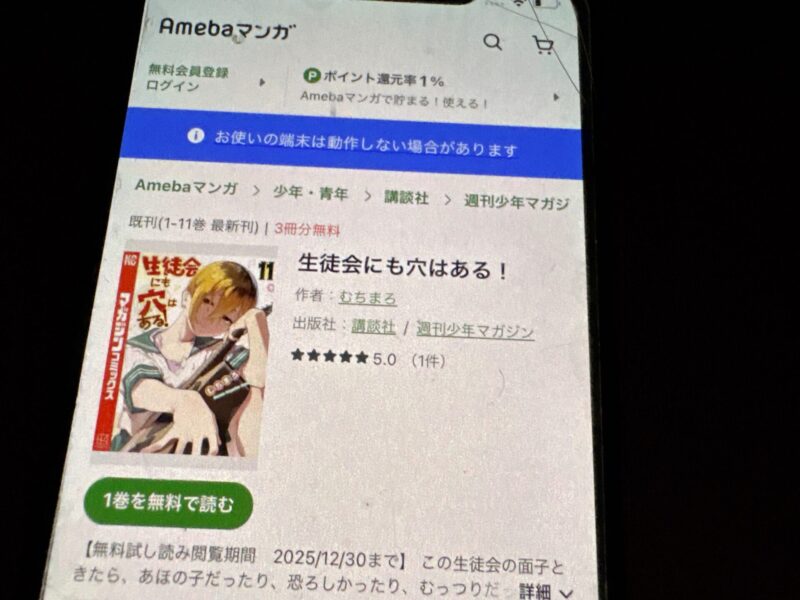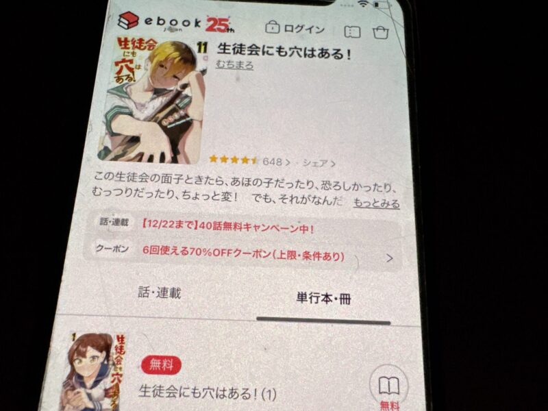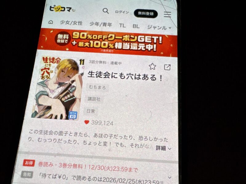 キャンペーンを利用することで一部の巻は無料で読めるため、お得に生徒会にも穴はある!漫画を全巻読むためには利用しましょう。