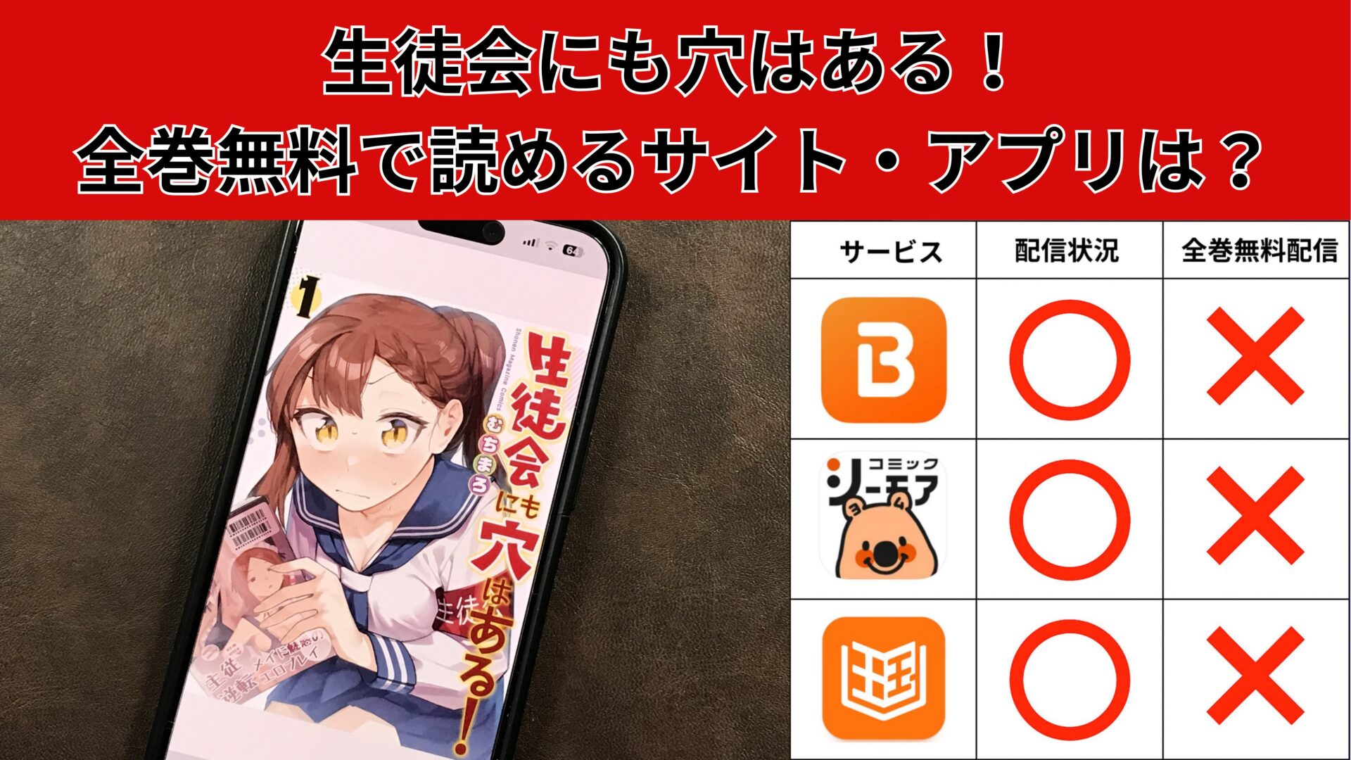 「生徒会にも穴はある!」の全巻を読みたい方は、本記事で紹介している電子書籍サービス・マンガアプリの利用を検討してみましょう。