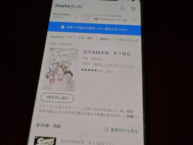 SHAMAN KINGはまるごと無料では読めませんが、試し読みはできます。