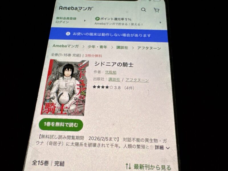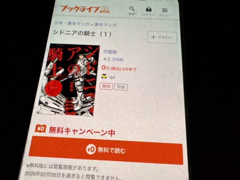 キャンペーンを利用することで一部の巻は無料で読めるため、お得にシドニアの騎士漫画を全巻読むためには利用しましょう。