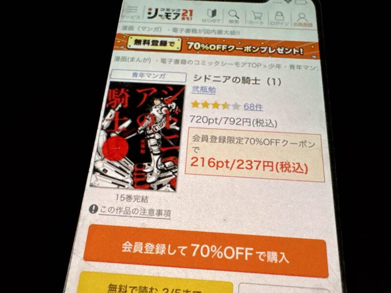 また、ブックライブは会員登録するだけで1冊限定の70%オフクーポンがもらえます。