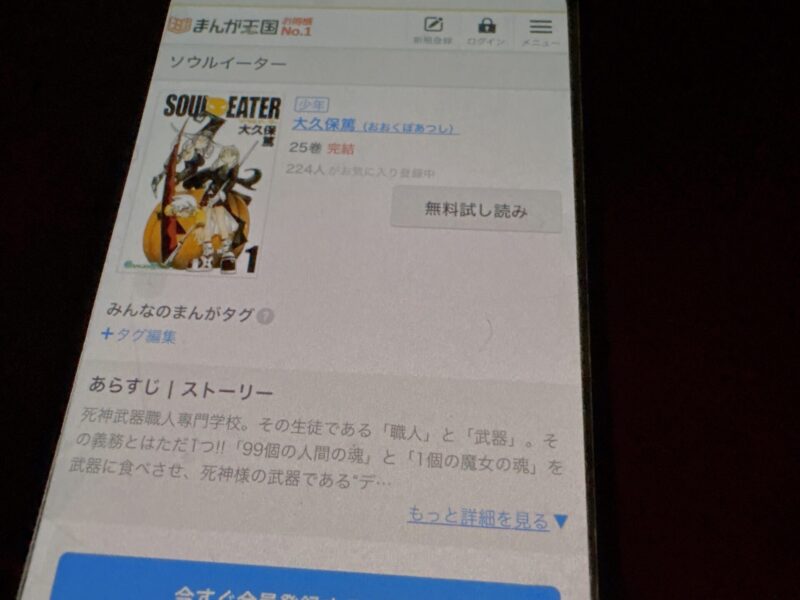 ソウルイーターはまるごと無料では読めませんが、試し読みはできます。