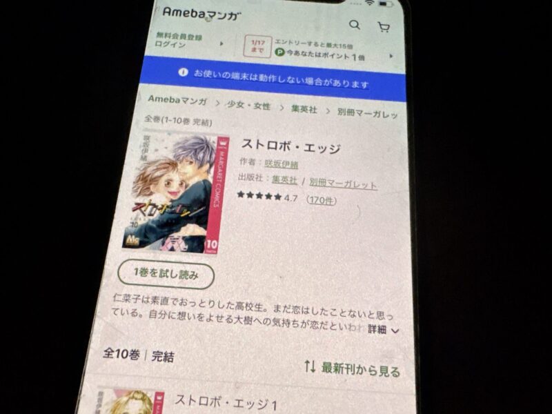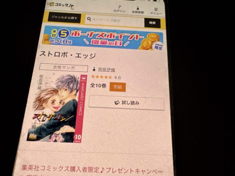 キャンペーンを利用することで一部の巻は無料で読めるため、お得にストロボ・エッジ漫画を全巻読むためには利用しましょう。