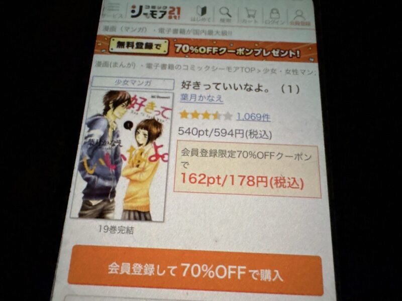 また、ブックライブは会員登録するだけで1冊限定の70%オフクーポンがもらえます
