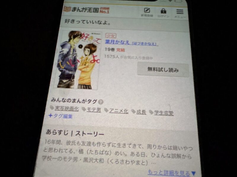 好きっていいなよ。はまるごと無料では読めませんが、試し読みはできます。