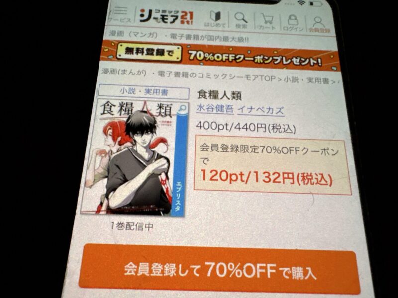 また、ブックライブは会員登録するだけで1冊限定の70%オフクーポンがもらえます