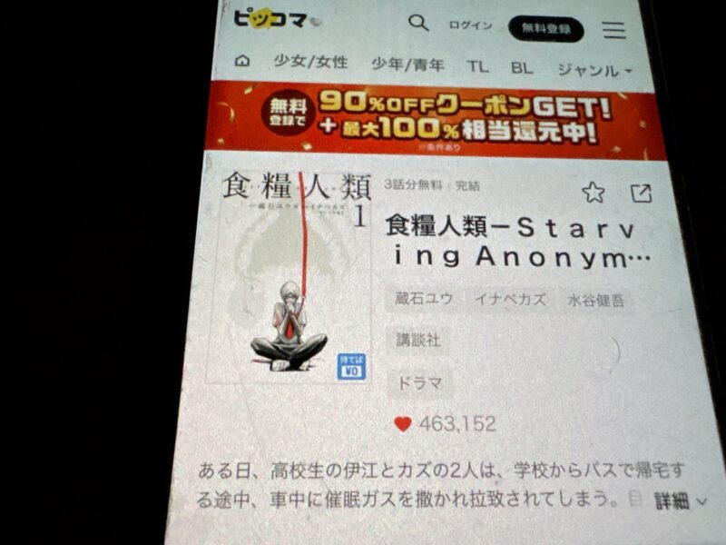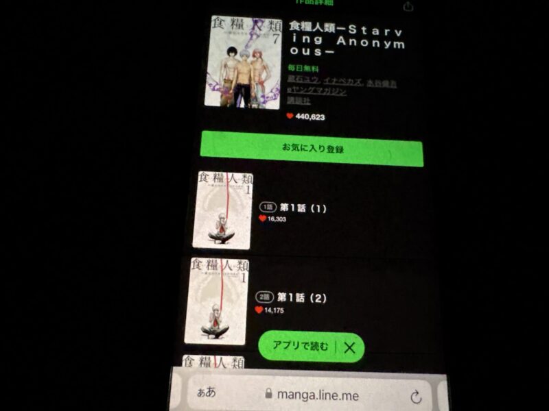 ここからは、食糧人類の漫画が無料で読めるアプリを紹介します。