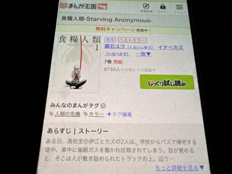キャンペーンを利用することで一部の巻は無料で読めるため、お得に食糧人類漫画を全巻読むためには利用しましょう