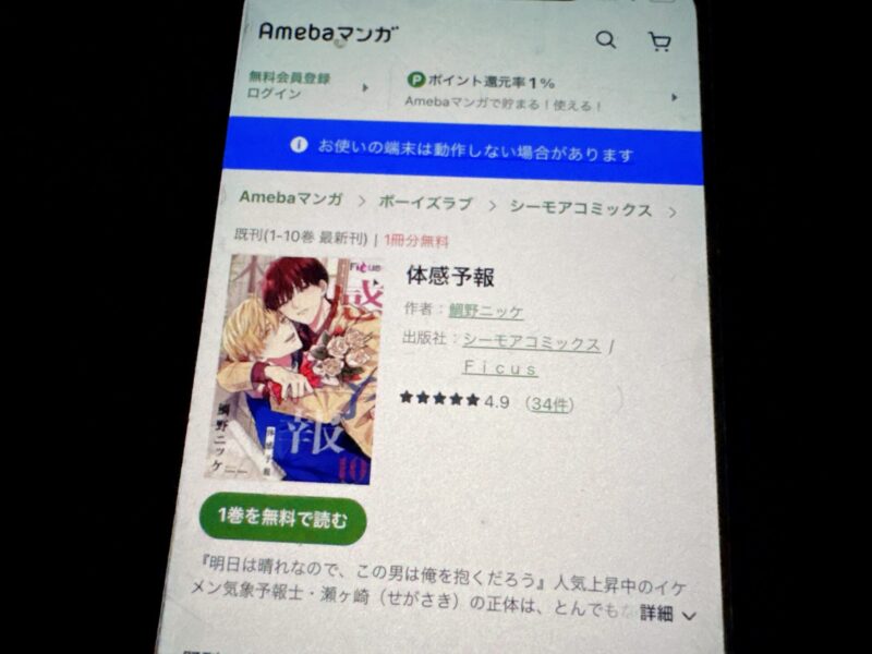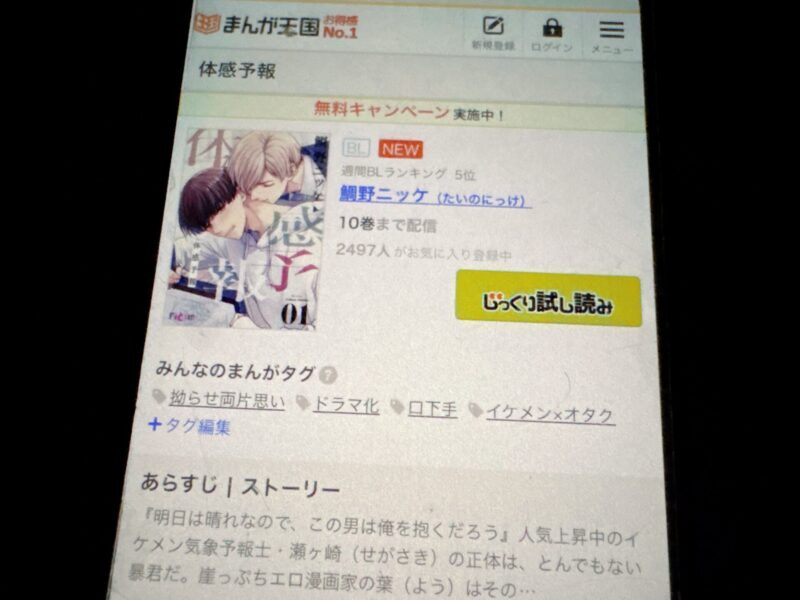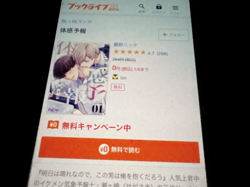体感予報はまるごと無料では読めませんが、1巻が無料で読めるキャンペーンが行われていることがあります。