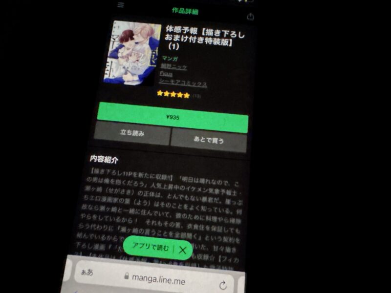 LINEが運営する「LINEマンガ」では、体感予報を10巻までを有料配信しています。