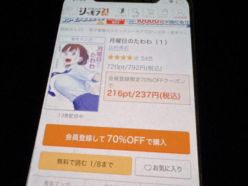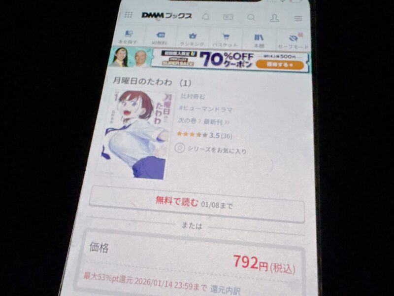 キャンペーンを利用すると、月曜日のたわわを割安にまとめて購入したり、1巻だけ無料で購入することが可能です。