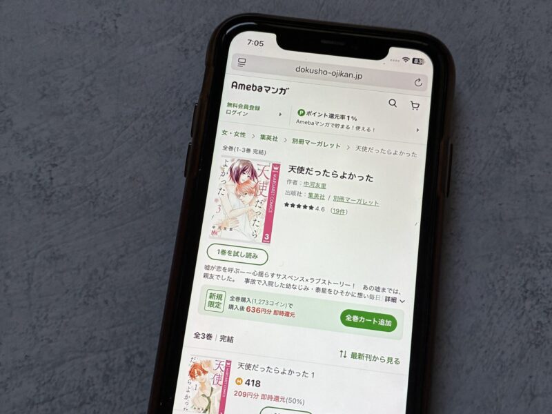 キャンペーンを利用することで一部の巻は無料で読めるため、お得に天使だったらよかった漫画を全巻読むためには利用しましょう。