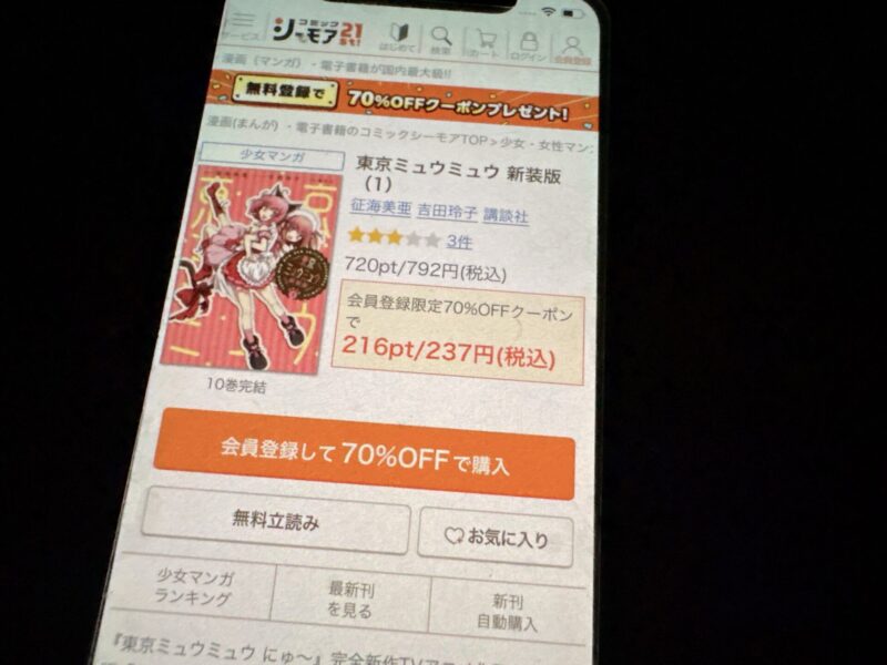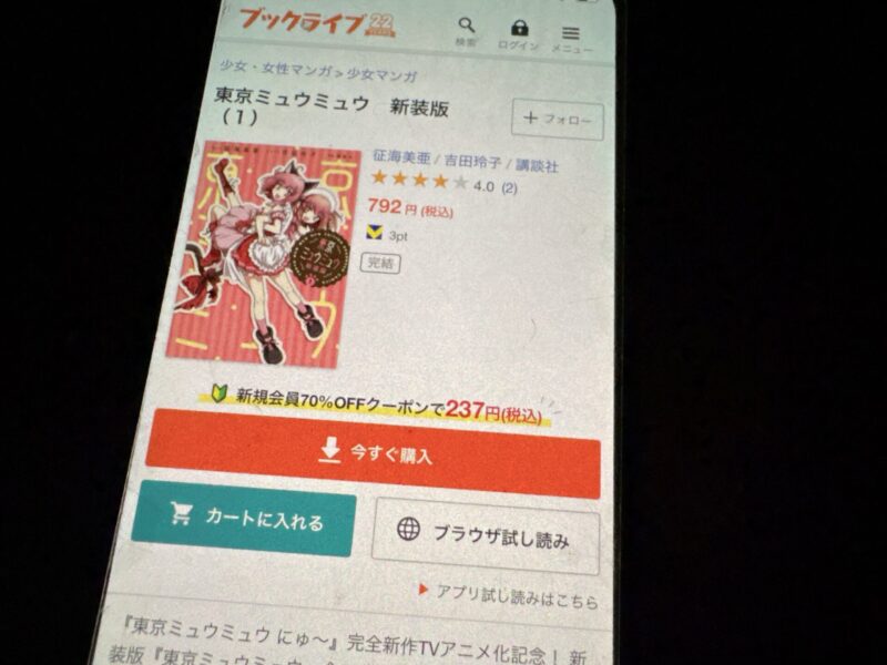 キャンペーンを利用すると、東京ミュウミュウを割安にまとめて購入したり、1巻だけ無料で購入することが可能です。