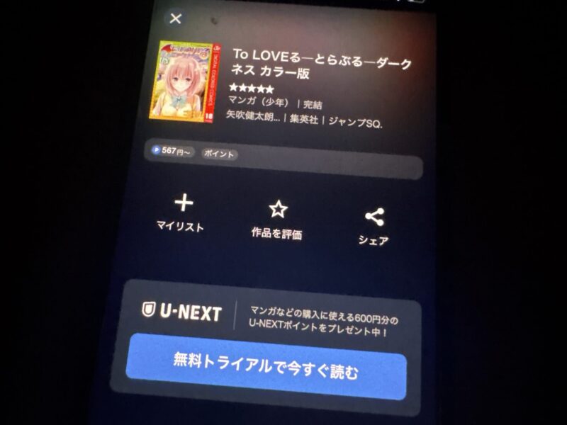 31日間の無料トライアルがあるU-NEXTですが、最新刊も無料で読めます。