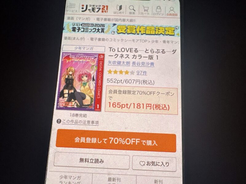 キャンペーンを利用すると、To LOVEる―とらぶる―ダークネス カラー版を割安にまとめて購入したり、1巻だけ無料で購入することが可能です。