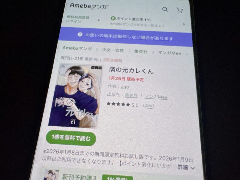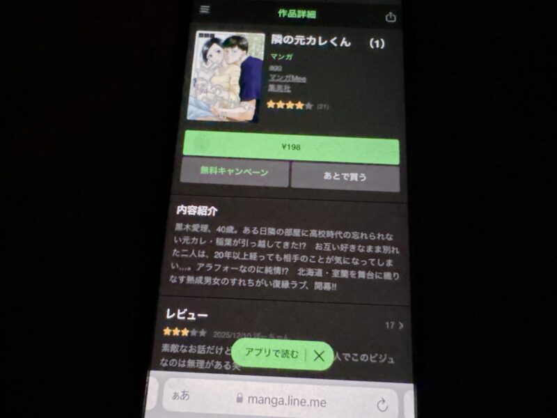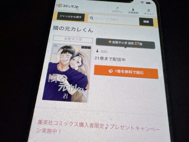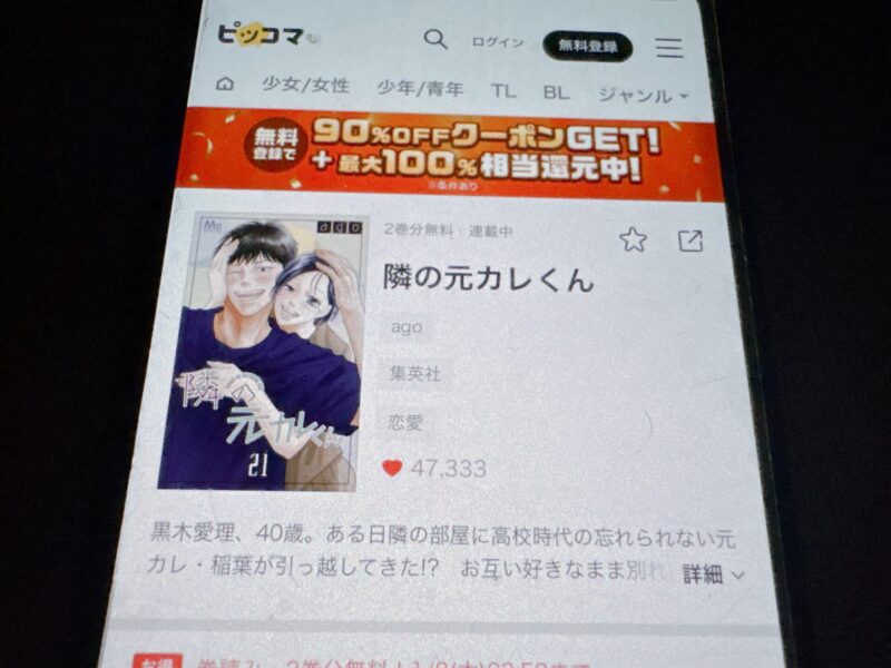 隣の元カレくんが、無料で読める漫画アプリを紹介します。