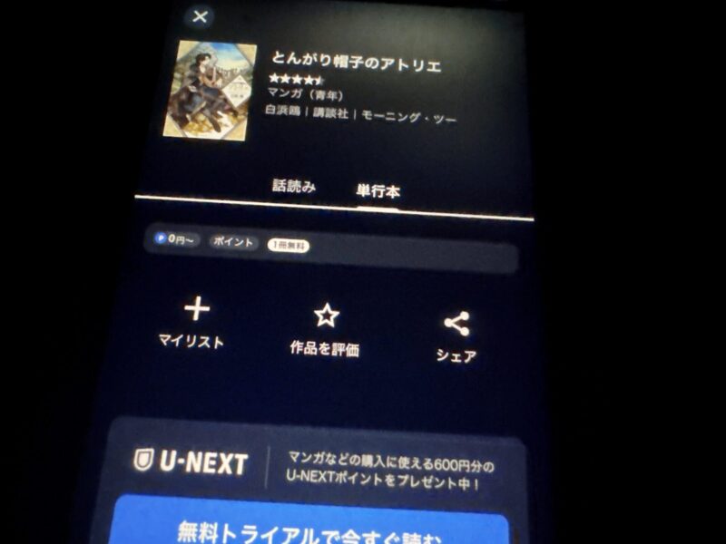 31日間の無料トライアルがあるU-NEXTですが、最新刊も無料で読めます。
