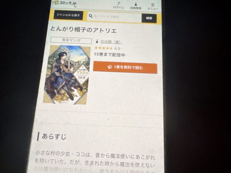 ここからは、とんがり帽子のアトリエの漫画が無料で読めるアプリを紹介します。