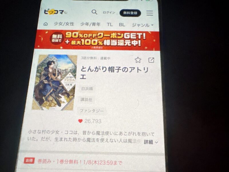 キャンペーンを利用することで一部の巻は無料で読めるため、お得にとんがり帽子のアトリエ漫画を全巻読むためには利用しましょう。