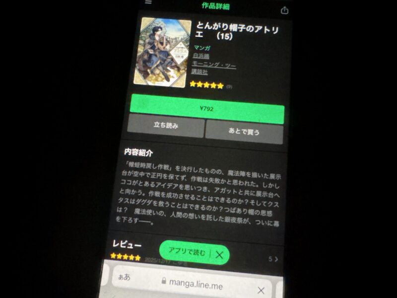 LINEが運営する「LINEマンガ」では、とんがり帽子のアトリエを15巻まで有料配信しています。