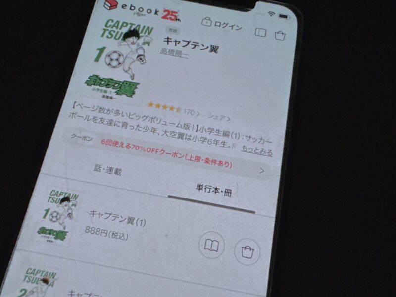 たとえばキャプテン翼1巻(税込668円)を購入する場合、クーポン利用で468円割引され、200円(税込)で購入できます。