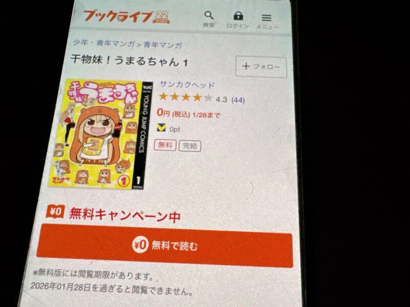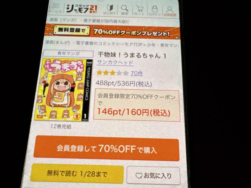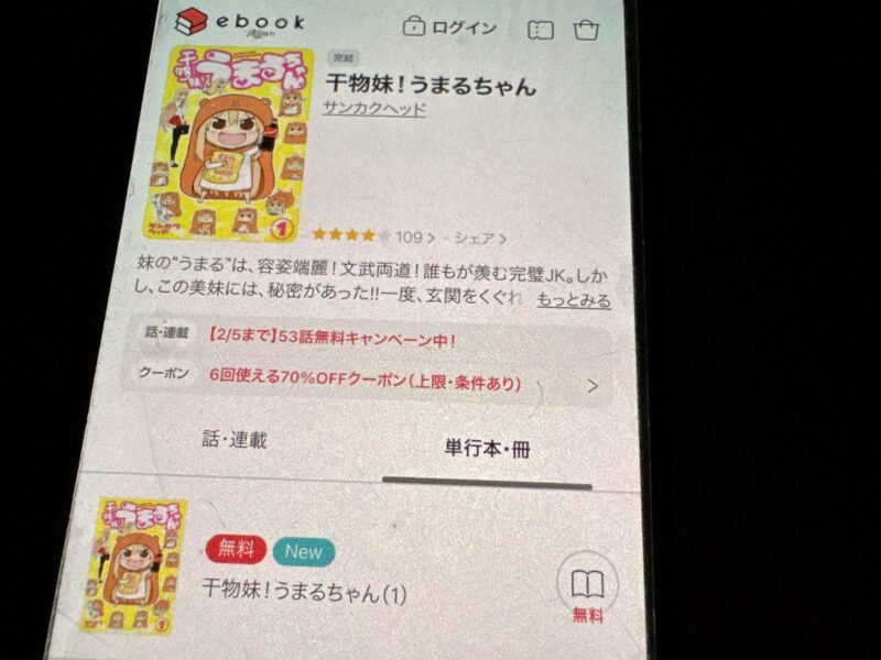 キャンペーンを利用すると、干物妹!うまるちゃんを割安にまとめて購入したり、1巻だけ無料で購入することが可能です。